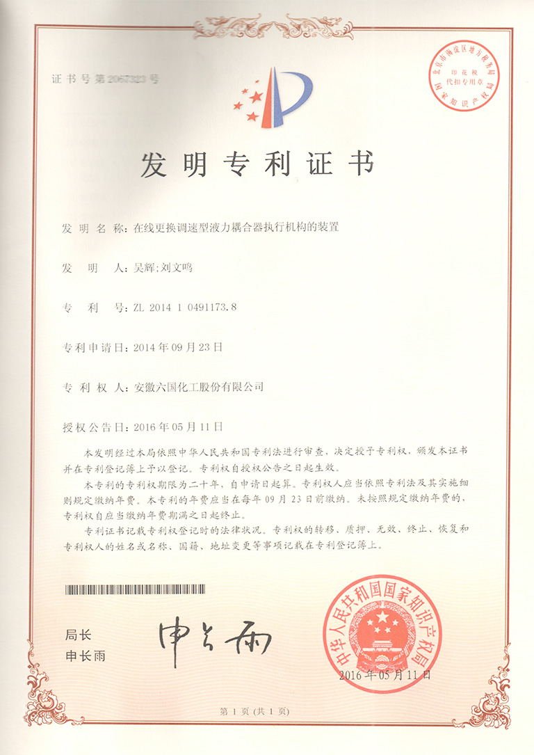 • 2016在線更換調速型液力耦合器執行機構的裝置