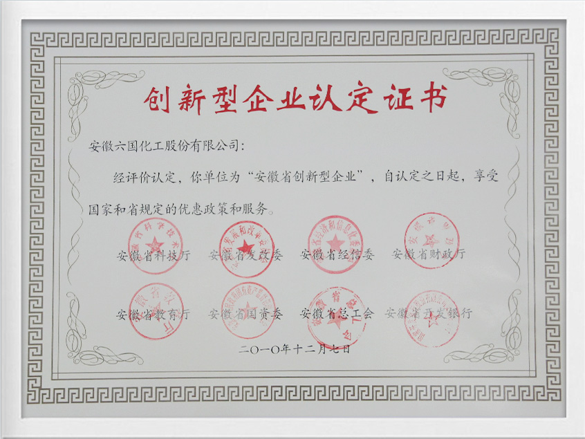 安徽省創新型企業證書